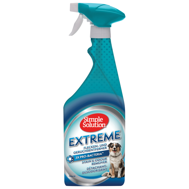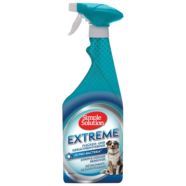 Simple Solution Extreme Stain Odour Remover - 750 ml3 x silniejsza formułaSkoncentrowany, enzymatyczny eliminator plam i przykrych zapachwNasza wyjątkowa formuła zawiera kompleksPro-Bacteria, ktry produkuje enzymy usuwajace plamy i zapachy pozostawione przez zwierzęta domowe.Dzięki wysokiejefektywności jest zalecanyw organicznym usuwaniu uporczywych plam z moczu, kału iwymiocin.Idealnie zdaje egzamin wusuwaniu plam oraz zapachw z takich powierzchni jak: dywany, tapicerki, łżka, odzież.Przed użyciem:Usunąć resztki zanieczyszczeń (płynnych i stałych). Dobrze wstrząsnąć i sprawdzić odporność kolorw na niewielkiej, niewidocznej powierzchni. W przypadku podłg drewnianych - sprawdź zalecenia sprzedawcy. Nie stosować na skrzane powierzchnie.Wskazwki użycia:Nasączyć zabrudzoną powierzchnię. Podczas czyszczenia dywanw pokryć dwukrotnie powierzchnię zabrudzenia upewniając się,że nasączenie nastąpilodo podstawy dywanu. Poczekaćminimum 10 min. aby kompleks Pro-Bacteria mgł zadziałać. Usunąć nadmiar wilgoci białą ściereczką. Po całkowitym wysuszeniu powierzchni (24-48h) starannie odkurzyć. W przypadku ewentualnych pozostałych nieczystości - zwilżyć wodą iprzetrzeć wilgotną szmatką.Zawiera między innymi składniki:kompozycje zapachowe, hexyl cinnamal, 2-Bromo-2-Nitropropane-1,3-Diol, Benzisothiazolinone.Porady dotyczące bezpieczeństwa:W przypadku kontaktu z oczami dokładnie przepłukać wodą przez 15 minut. Przechowywać w miejscu niedostępnym dla dzieci i dla zwierząt.