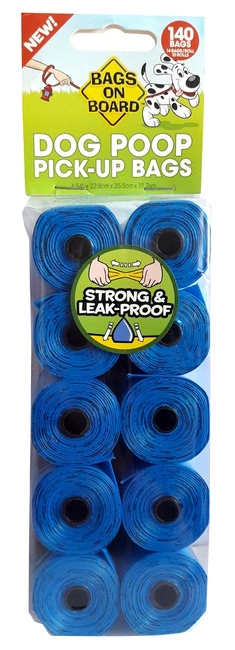 Bags on Board Worki niebieskieW zestawie 10 rolek po 14 sztuk - łącznie 140 workw.Rozmiar pojedynczego worka: 22,8 x 35,5 cmWorki w kolorze niebieskimWorki na odchody są niezbędne podczas spacerw z psem. Pozwalają zadbać o nasze otoczenie. Doskonale sprawdzają się na krtkim spacerze i w dłuższej podrży.Pomagają w prosty sposb posprzątać psie odchody i zadbać o czystość wsplnej przestrzeni - dzięki nim zachowasz higienę rąk i otoczenia.Duży rozmiar pojedynczego worka zapewnia odpowiednią przestrzeń aby bez problemu posprzątać odchody oraz zamknąć worek.Worki są wystarczająco grube, aby zminimalizować wrażenie bezpośredniego dotykania odchodw oraz gwarantują 100% szczelność.Rolki mają szerokość 6 cm i pasują do większości podajnikw na worki.Z workami Bags on Board spacery z psem to czysta przyjemność!