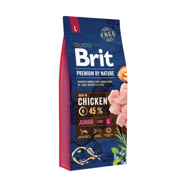 Brit Premium By Nature Junior L to pełnoporcjowa sucha karma dla psów od 1 do 24 miesiąca życia o wadze od 25 do 45 kg, z kurczakiem, która dostarcza intensywnie rozwijającym się szczeniętom wszystkich niezbędnych składników odżywczych. Formułę możesz podawać szczeniętom od momentu rozszerzania diety, czyli ukończenia pierwszego miesiąca życia. Jest to odpowiedni pokarm dla rosnących szczeniąt, a potem dla psów aż do przekroczenia granicy dwóch lat.