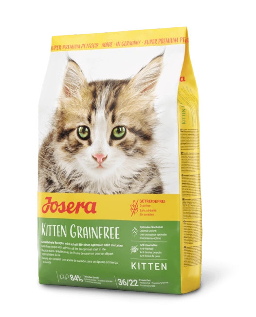 Josera Kitten GrainFree to bezzbożowa kama posiadająca lekkostrawną formułę z dużą zawartością drobiu oraz wysokim poziomem energii tak niezbędnym w kluczowej fazie rozwoju. Karma jest łatwo przyswajalna, ma dodatek specjalnych włókien, które zmniejszają ryzyko powstawania kul włosowych oraz dodatek oleju z łososia - źródła kwasu DHA.