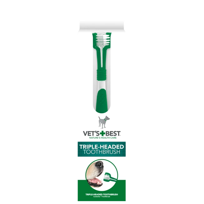 Vet's Best Trzygłowicowa szczoteczka do zębw dla pswSpecjalnie zaprojektowana szczoteczka, ktra uwzględnia cechy anatomiczne psich zębw.Szczoteczka ma trzy głowice, ktrych włosie dociera do wszystkich trudno dostępnych miejsc. Dzięki temu skutecznie oczyścisz zęby Twojego psa.Szczoteczka posiada wygodny i antypoślizgowy uchwyt.W celu uzyskania najlepszych rezultatw zalecamy do mycia stosować produkty dentystyczne firmy Vet’s Best.Dzięki regularnemu szczotkowaniu usuwany jest kamień i płytka nazębna, ktre osadzają się na zębach naszych czworonogw.