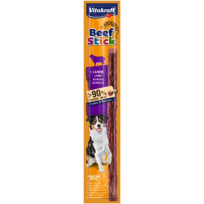 Przysmak dla psów wszystkich ras. Vitakraft Beef Stick to mięsny przysmak z jagnięciną.